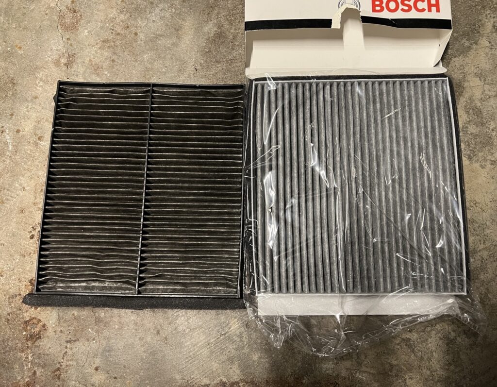 先说空调滤芯,原厂的很单薄,薄薄的一层布,塑料框架,新的滤芯很厚,厚到很难塞进去,边缘是加厚纸质,不像原厂是硬塑料的。硬塞进去后边框变形有个缝,调了几次也没弄好。可能是滤芯比较厚的缘故,感觉过滤效果比以前好,空调开内循环路过化工厂基本问不到味道,旧的还能闻到一些化学品的味道。